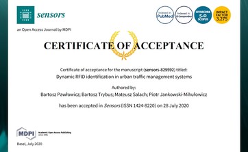 W dniu 29 lipca 2020 r. ukazała się nowa publikacja: Pawłowicz B., Trybus B., Salach M., Jankowski-Mihułowicz P: Dynamic RFID Identification in Urban Traffic Management Systens, Sensors (...)