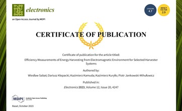 30 stycznia 2024 r. w czasopiśmie Electronics (MNiSW 100 pkt, IF: 2.9) ukazała się nasza nowa publikacja dotycząca innowacyjnych prac związanych z identyfikatorami-czujnikami RFID (...)
