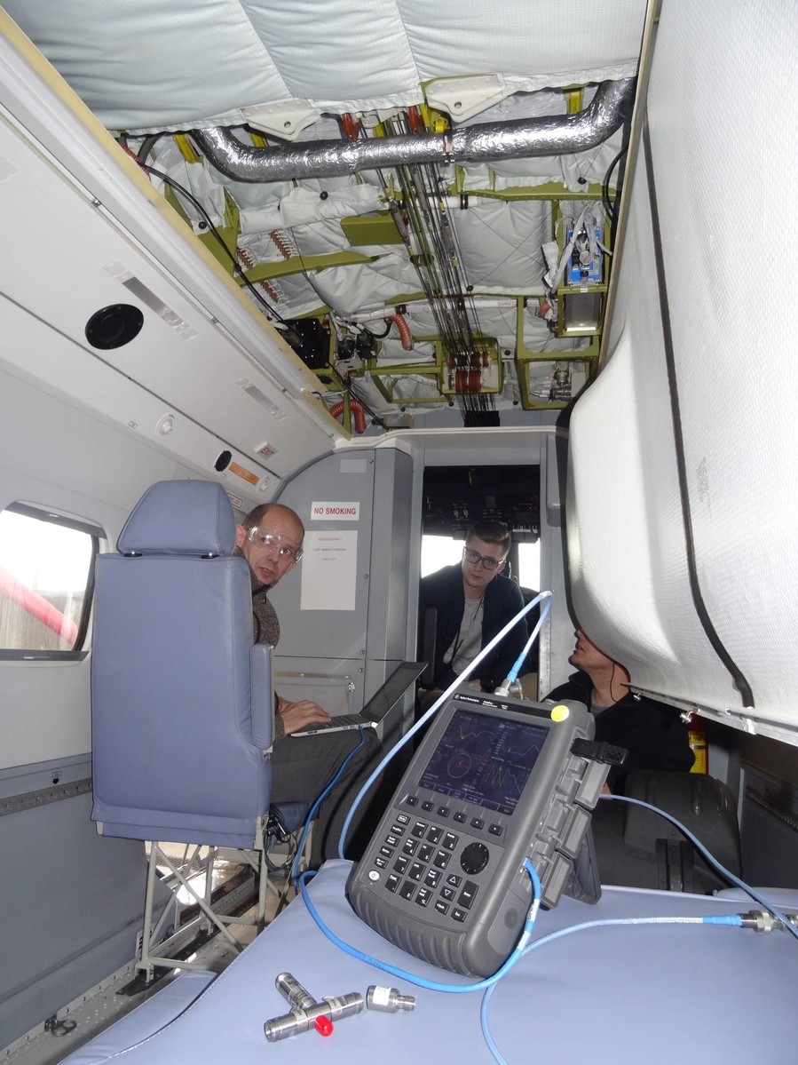 W grudniu 2018 r. pracownicy Katedry Systemów Elektronicznych i Telekomunikacyjnych Politechniki Rzeszowskiej już kolejny rok z rzędu realizowali w Polskich Zakładach Lotniczych w Mielcu, spółce należącej do koncernu Lockheed Martin (PZL Mielec), prace badawczo-rozwojowe z wykorzystaniem systemu antenowego, który stanowi element zaplecza przemysłowego w zakresie badań kompatybilności elektromagnetycznej systemów pokładowych i radiokomunikacyjnych montowanych na statkach powietrznych. W ramach przedmiotowego etapu prac B+R pn. „Badania wybranych układów antenowych w poligonowym systemie pomiarowym PZL Mielec” (umowa PRz nr RE-U-18369), pracownicy KSEiT m.in. zrealizowali proces szkolenia zespołu PZL Mielec w zakresie wybranych zagadnień anten i propagacji fal radiowych. Omówione zostały wybrane konstrukcje i parametry anten stosowanych w systemach lotniczych, a także praktyczne problemy związane z ich numerycznym modelowaniem, montażem oraz prawidłowym funkcjonowaniem na statku powietrznym. Rozpatrywane zagadnienia stanowiły podstawę do przygotowania procedur i aparatury kontrolno-pomiarowej PZL Mielec do pomiarów wybranych parametrów anten montowanych na obiektach, których rozmiary geometryczne i masa nie pozwalają na wykonywanie takich działań np. w komorach bezechowych.