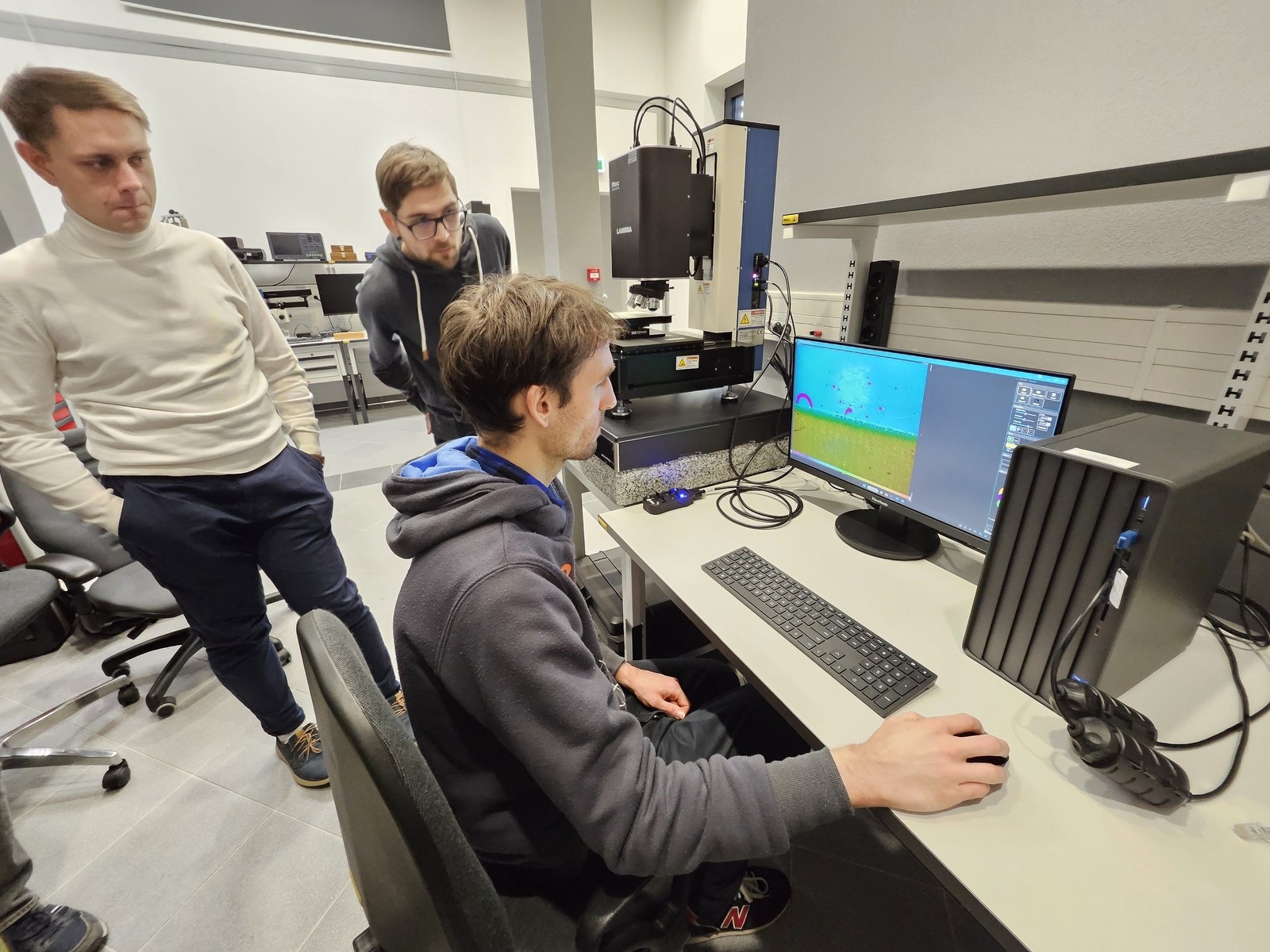 Po realizacji prac instalacyjnych odbyło się szkolenie, którym objęto konfigurację oraz obsługę profilometru optycznego i jego oprogramowania. Zostało ono zrealizowane przez panów Jacka Majewskiego i Mateusza Cużytka z firmy Technosolutions. W szkoleniu uczestniczyli wybrani pracownicy ZSEiT: dr hab. inż. Piotr Jankowski-Mihułowicz, prof. PRz, mgr inż. Kacper Skrobacz, mgr inż. Patryk Pyt oraz mgr inż. Aleksandr Kolomijec. W trakcie tych prac m. in. badano profile układów mikroelektronicznych identyfikatorów RFID, jakie były wykonywane w różnych procesach technologicznych podczas dotychczasowej współpracy m.in. z Talkin Things SA, ML System SA oraz Aluron Sp. z o.o.