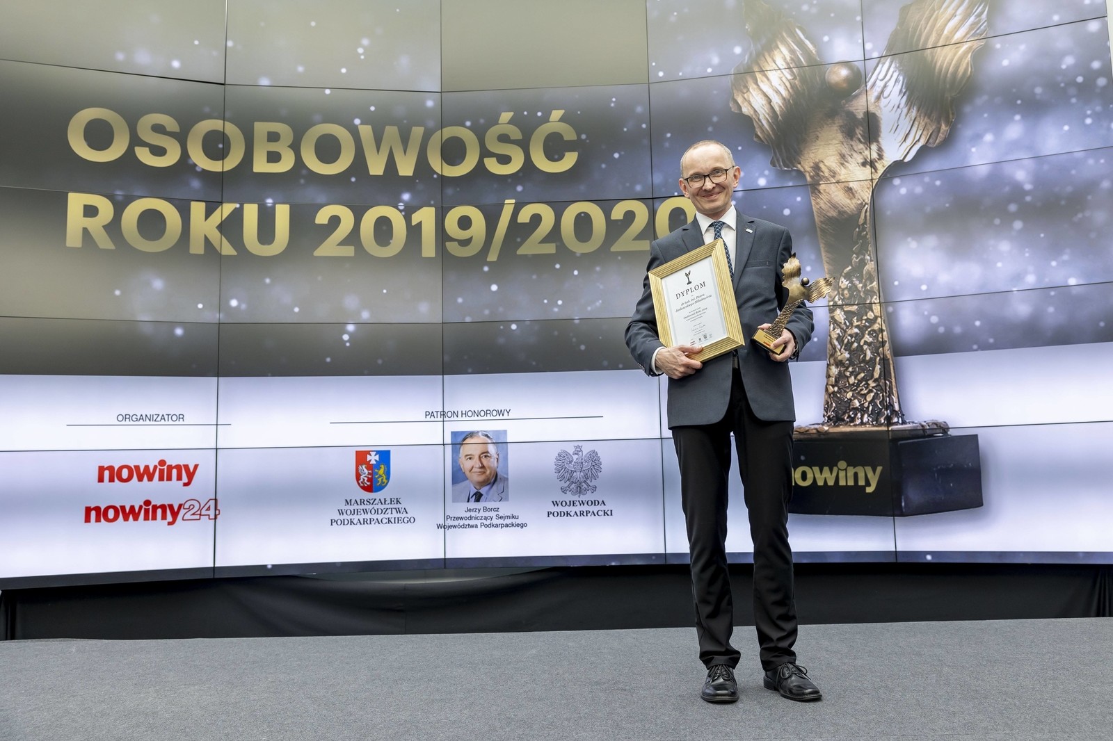 Podczas swojego wystąpienia laureat złożył serdeczne podziękowania za nominację oraz za każdy głos oddany wpierw w wojewódzkim, a następnie w ogólnopolskim finale plebiscytu Osobowość Roku 2019 w kategorii Nauka. Była to także dla niego okazja do złożenia hołdu nieżyjącemu już profesorowi Włodzimierzowi Kalicie, który jako ojciec elektroniki i telekomunikacji na Podkarpaciu wydatnie przyczynił się do uzyskania tego osiągnięcia wskazując w przeszłości kierunki działania i zapewniając podstawy do rozwoju i współpracy z otoczeniem społeczno-gospodarczym, co aktualnie stanowi istotny czynnik działalności zespołu naukowego Katedry Systemów Elektronicznych i Telekomunikacyjnych na Wydziale Elektrotechniki i Informatyki Politechniki Rzeszowskiej.