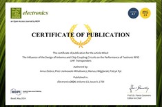 Ziobro A., Jankowski-Mihułowicz P., Węglarski M., Pyt P.: The Influence of the Design of Antenna and Chip Coupling Circuits on the Performance of Textronic RFID UHF Transponders, Electronics, Vol. 13, No. 9, 1759, 2024 (DOI: 10.3390/electronics13091759).
