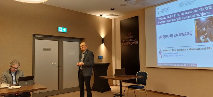 - dr hab inż. Piotr Jankowski-Mihułowcz, prof. PRz zaprezentował projekty Katedry Systemów Elektronicznych i Telekomunikacyjnych PRz z obszaru techniki RFID o istotnym potencjale komercjalizacyjnym, a także zakres współpracy z partnerami przemysłowymi;