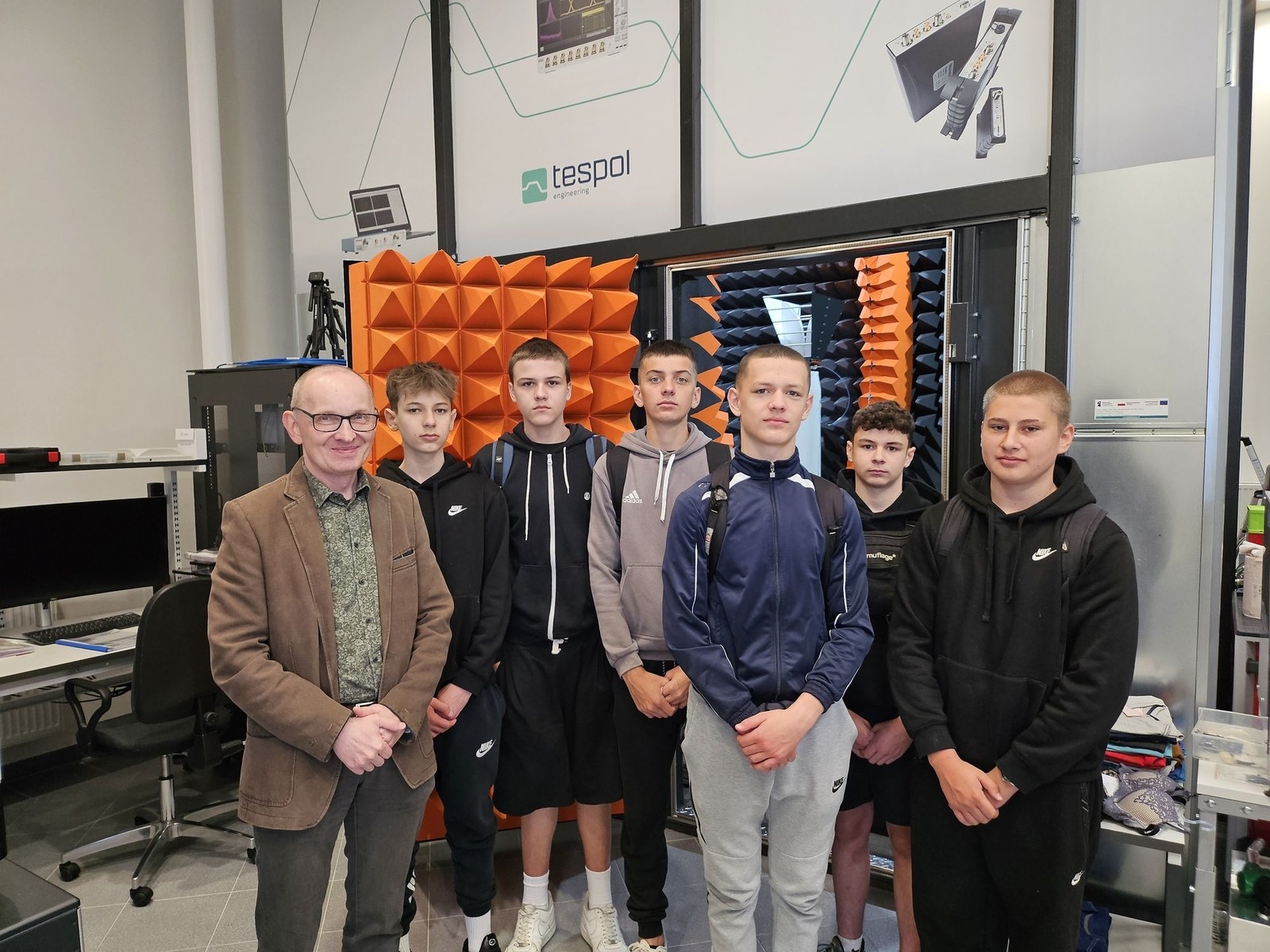 W dniu 28 maja 2025 r. mieliśmy przyjemność gościć w Zakładzie Systemów Elektronicznych i Telekomunikacyjnych uczniów i nauczycieli z Zespołu Szkół Technicznych im. Bohaterów Września 1939 r. w Kolbuszowej. W trakcie spotkania dr hab. inż. Piotr Jankowski-Mihułowicz, prof. PRz omówił wybrane innowacyjne prace badawczo-rozwojowe, współpracę z gospodarką i efekty komercjalizacyjne w zakresie techniki radiowej identyfikacji obiektów (RFID). Z kolei dr inż. Wiesław Sabat zaprezentował podobny obszar działalności Zakładu w obszarze zagadnień związanych z kompatybilnością elektromagnetyczną (EMC).