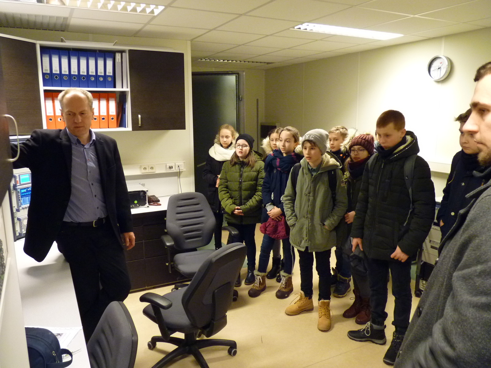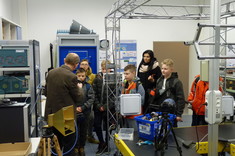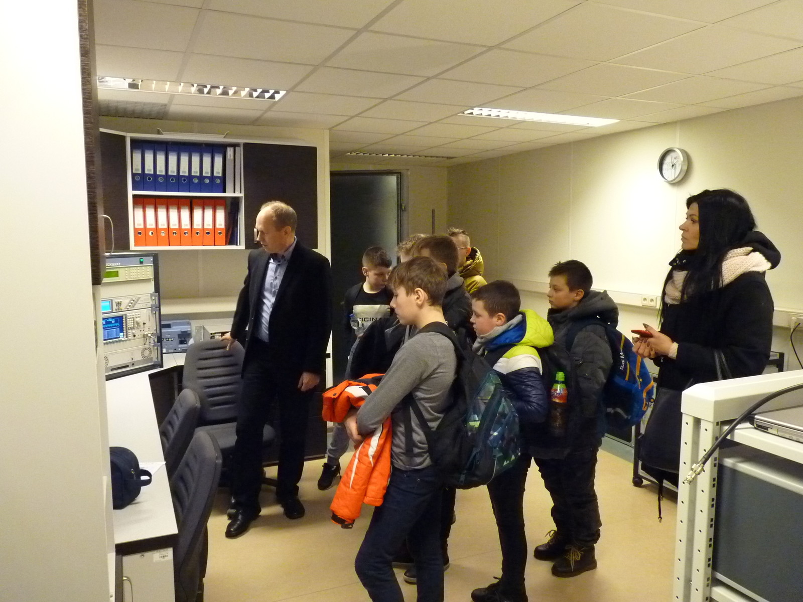Na samym wstępie dr inż. Wiesław Sabat z wyjątkowym zaangażowaniem zapoznał zwiedzających z infrastrukturą, przeznaczeniem oraz możliwościami badań realizowanych w laboratorium kompatybilności elektromagnetycznej (EMC – ang. Electro-Magnetic Compatibility). Podkreślił, że współcześnie przy dużej ilości urządzeń elektrycznych i elektronicznych jakie nas otaczają, zaczynamy żyć w tzw. „smogu elektromagnetycznym”. Smog ten ma wpływ zarówno na organizmy żywe, a także na urządzenia znajdujące się we wzajemnej bliskości. Z tego powodu bardzo ważne jest to, aby w fazie projektowania każdego takiego urządzenia ograniczyć poziom emisji zaburzeń do wymagań określonych w normach. Mając na uwadze te zagadnienia, w części demonstracyjnej dr Sabat przedstawił problem generacji zaburzeń elektromagnetycznych przez współczesne lampy LED. Ponadto, na podstawie kolorowych przebiegów z oscyloskopu i analizatora widma, generowanych w obwodzie zasilania różnych żarówek, pokazał zwiedzającym w jaki sposób osiągana jest oszczędność energii w lampach LED. Równocześnie uczulił wszystkich uczestników spotkania na problem utylizacji żarówek i konieczność traktowania ich jako urządzań elektronicznych, które należy przekazywać do specjalistycznych punktów recyklingu.