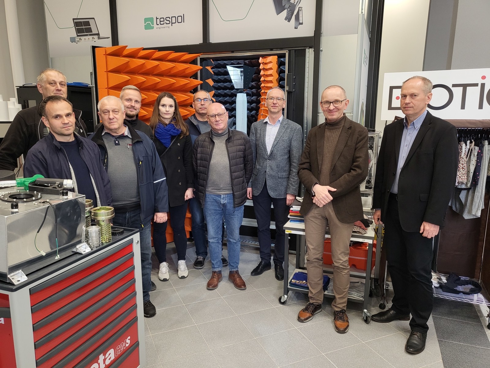 W trakcie wizyty dr hab. inż. Piotr Jankowski-Mihułowicz (kierownik KSEiT), dr inż. Wiesław Sabat (kierownik laboratorium EMC) oraz dr inż. Kazimierz Kamuda (kierownik techniczny laboratorium EMC) zapoznali Gości z UKE ze specyfiką prac B+R+W prowadzonych w Katedrze. Następnie zaprezentowali i omówili specjalistyczne wyposażenie laboratoriów kompatybilności elektromagnetycznej EMC oraz techniki radiowej identyfikacji RFID, a także obszerną współpracę z otoczeniem społeczno-gospodarczym. Podczas zwiedzania laboratoriów szczególną uwagę zwrócono na aparaturę niedawno zakupioną z projektu pn. „Polska Sieć Laboratoriów EMC (EMC-LabNet)” (POIR.04.02.00-02-A007/16), współfinansowanego w ramach Europejskiego Funduszu Rozwoju Regionalnego ze środków Działania 4.2 Rozwój Nowoczesnej Infrastruktury Badawczej Sektora Nauk, Programu Operacyjnego Inteligentny Rozwój 2014-2020. Przy tej okazji omówiono także możliwości współpracy UKE z KSEiT, a także korzyści, jakie przyniesie gospodarce regionu akredytacja laboratorium EMC, która aktualnie jest finalizowana w ramach projektu badawczego „Regionalne Centrum Doskonałości Automatyki i Robotyki, Informatyki, Elektrotechniki, Elektroniki oraz Telekomunikacji Politechniki Rzeszowskiej”, finansowanego przez MEiN z programu „Regionalna Inicjatywa Doskonałości” (nr 027/RID/2018/19).