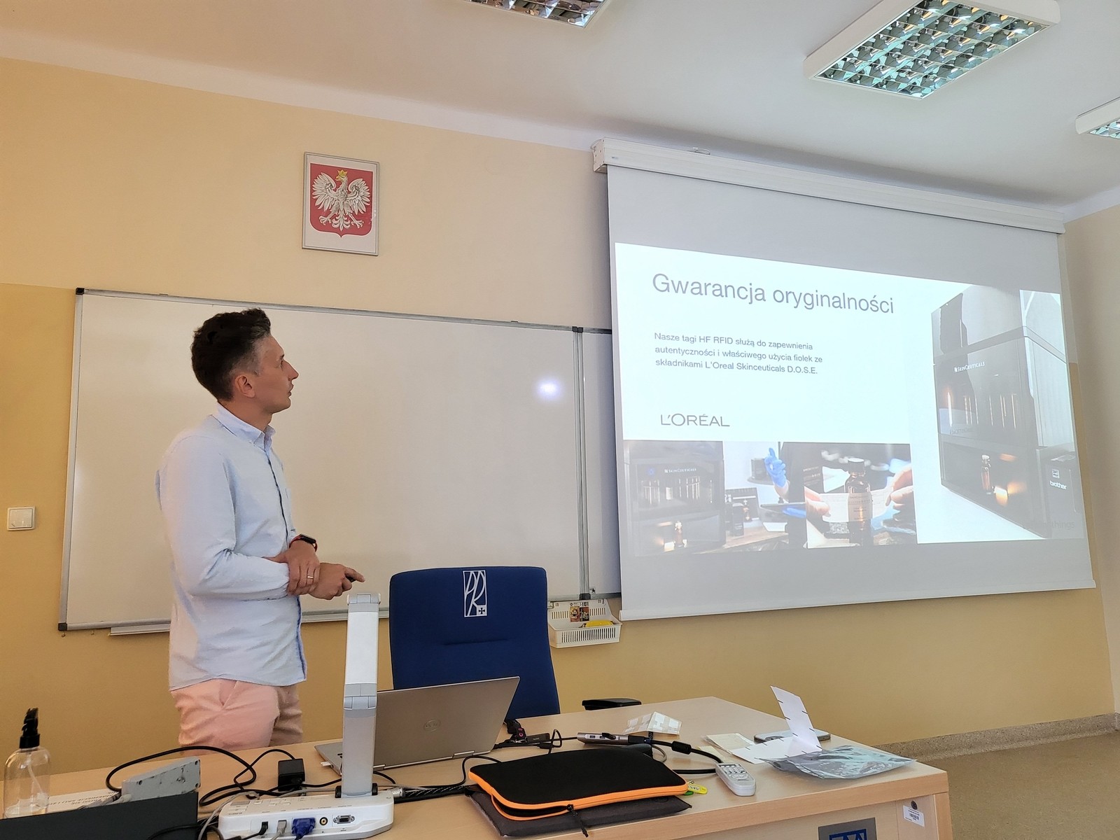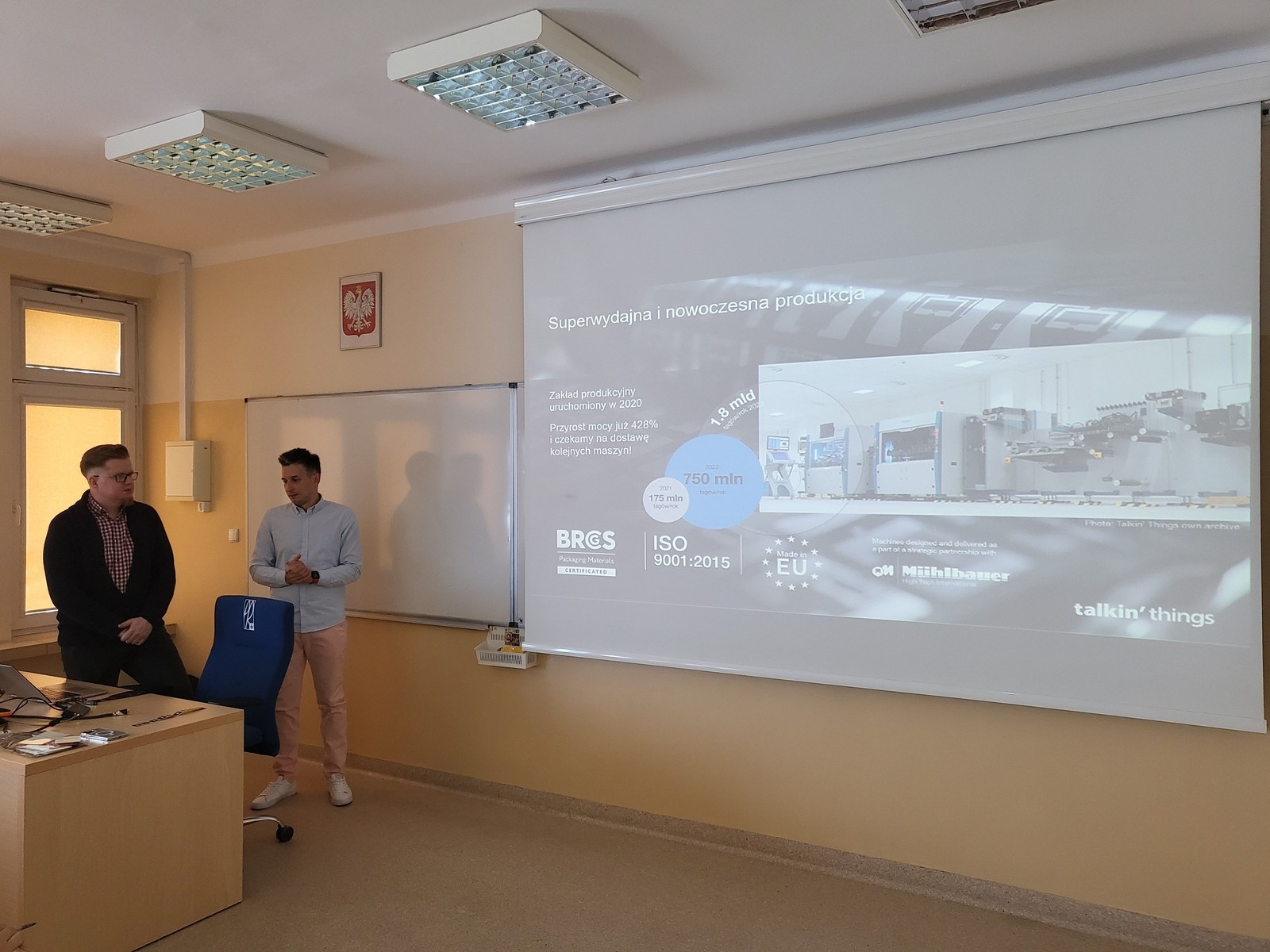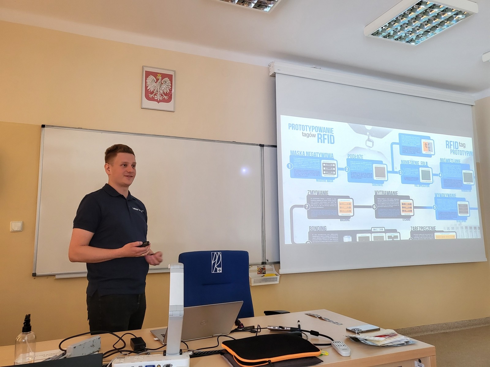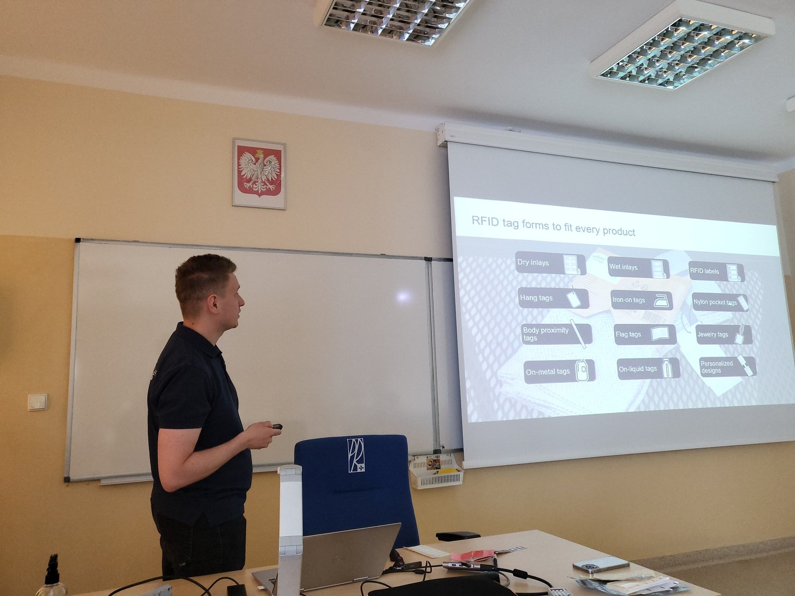 W dniu 6 czerwca 2023 roku studenci ostatniego semestru studiów II stopnia na kierunku elektronika i telekomunikacja, w ramach kończących się zajęć z modułu pn. technika radiowej identyfikacji obiektów, mieli okazję do spotkania się z przedstawicielami firmy Talkin’ Things, które zostało zorganizowane z inicjatywy dra hab. inż. Piotra Jankowskiego-Mihułowicza, prof. PRz. W trakcie spotkania odbył się wykład, podczas którego mgr inż. Wojciech Lichoń (Head of R&D), mgr inż. Damian Kawalec (RFID Expert/Sales Manager) oraz mgr inż. Mateusz Chamera (Lead of RFID Tag Development) wpierw zaprezentowali studentom Wydziału Elektrotechniki i Informatyki swoje sylwetki zawodowe, a następnie przedstawili projektowo-produkcyjny profil działalności firmy w zakresie techniki RFID. Podczas prezentacji omawiane były konkretne przykłady projektowania, prototypowania i produkcji w Talkin’ Things identyfikatorów RFID, które znajdują powszechne zastosowania w zautomatyzowanych procesach takich firm, jak np.: Decathlon, Inditex, Boehringer Ingelheim, Sato, Nestle, Calzedonia, L'Oréal, Sanofi, Mango, Goodwill, Mars, Coca-Cola, GSK, P&G, TAKARA-TOMY Company. Było to doskonałe uzupełnienie wiedzy, jaką studenci zdobywali podczas realizowanych zajęć dydaktycznych w przedmiotowym zakresie.