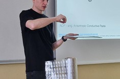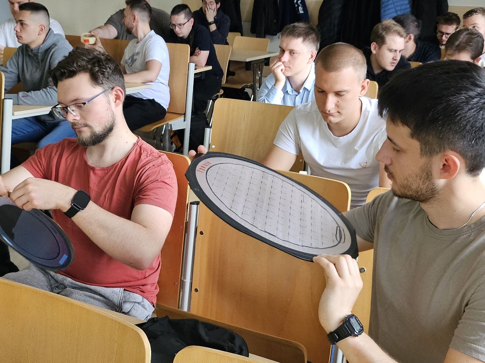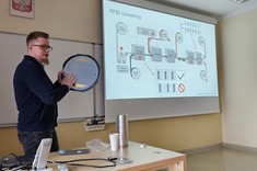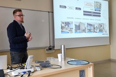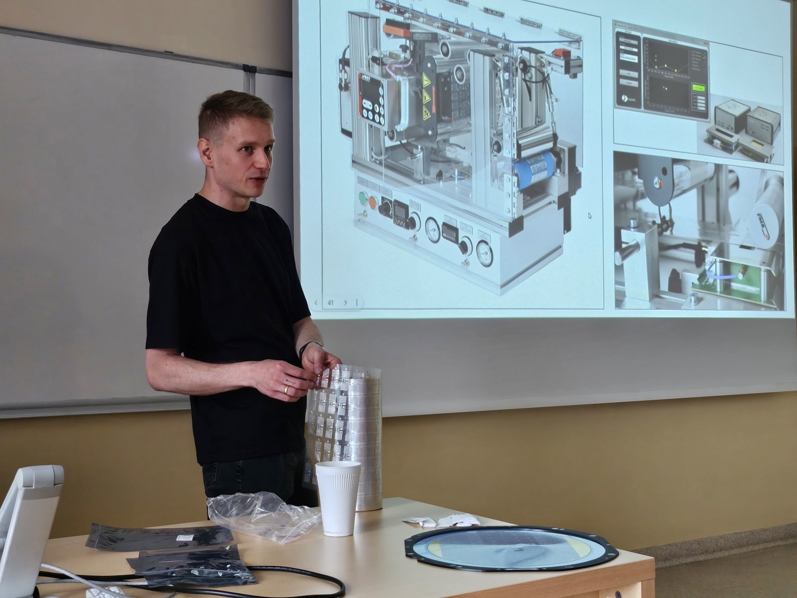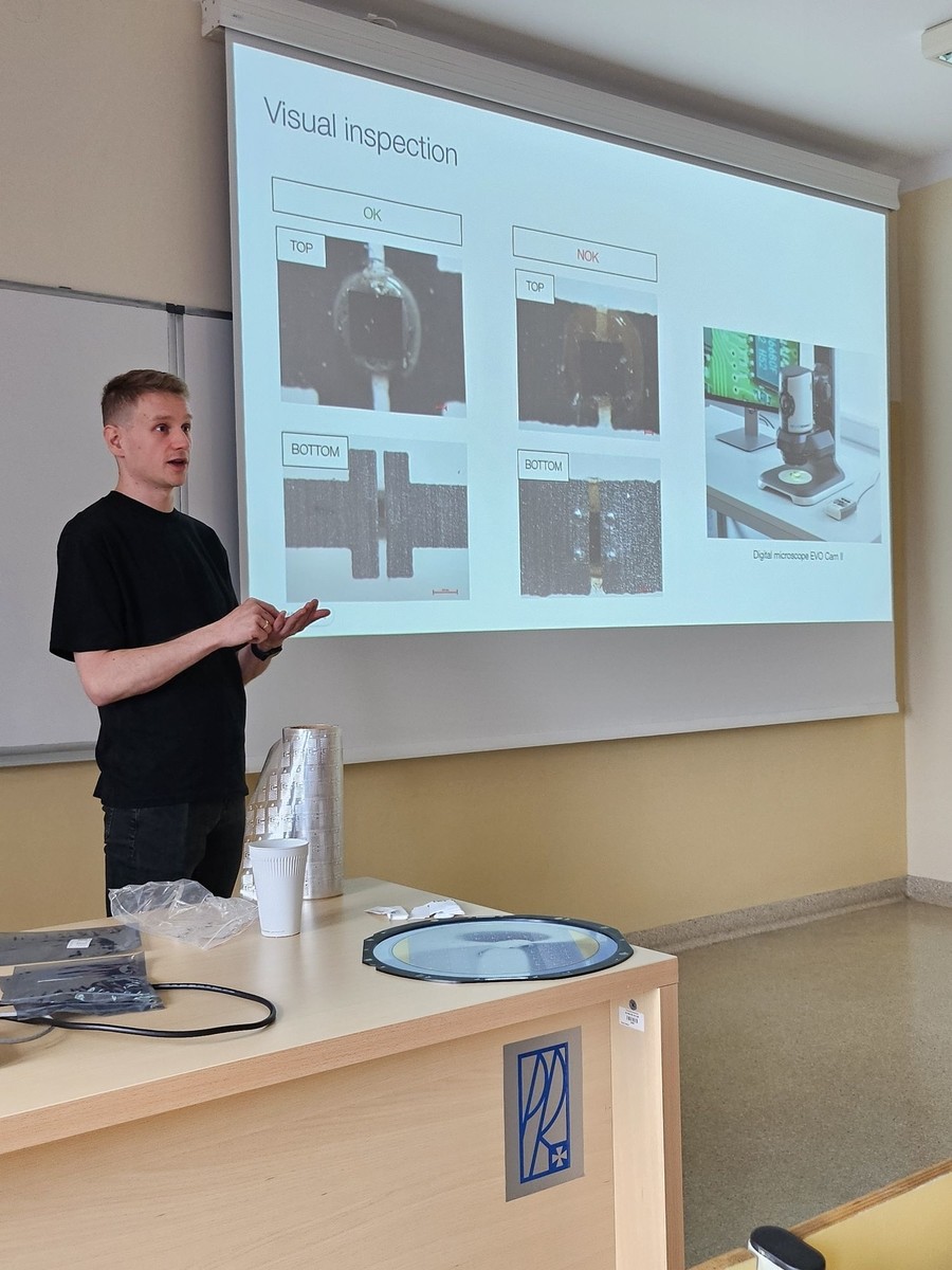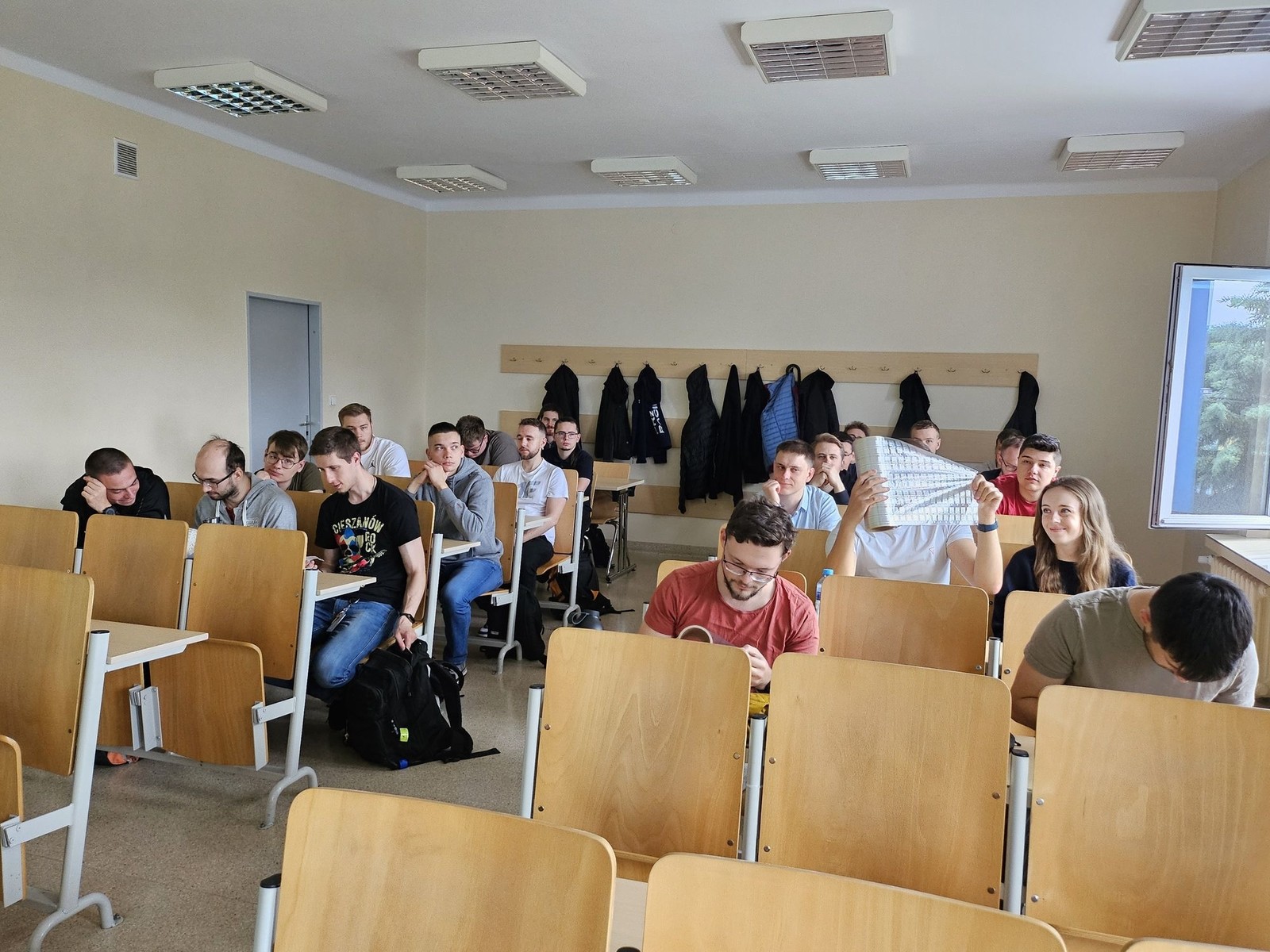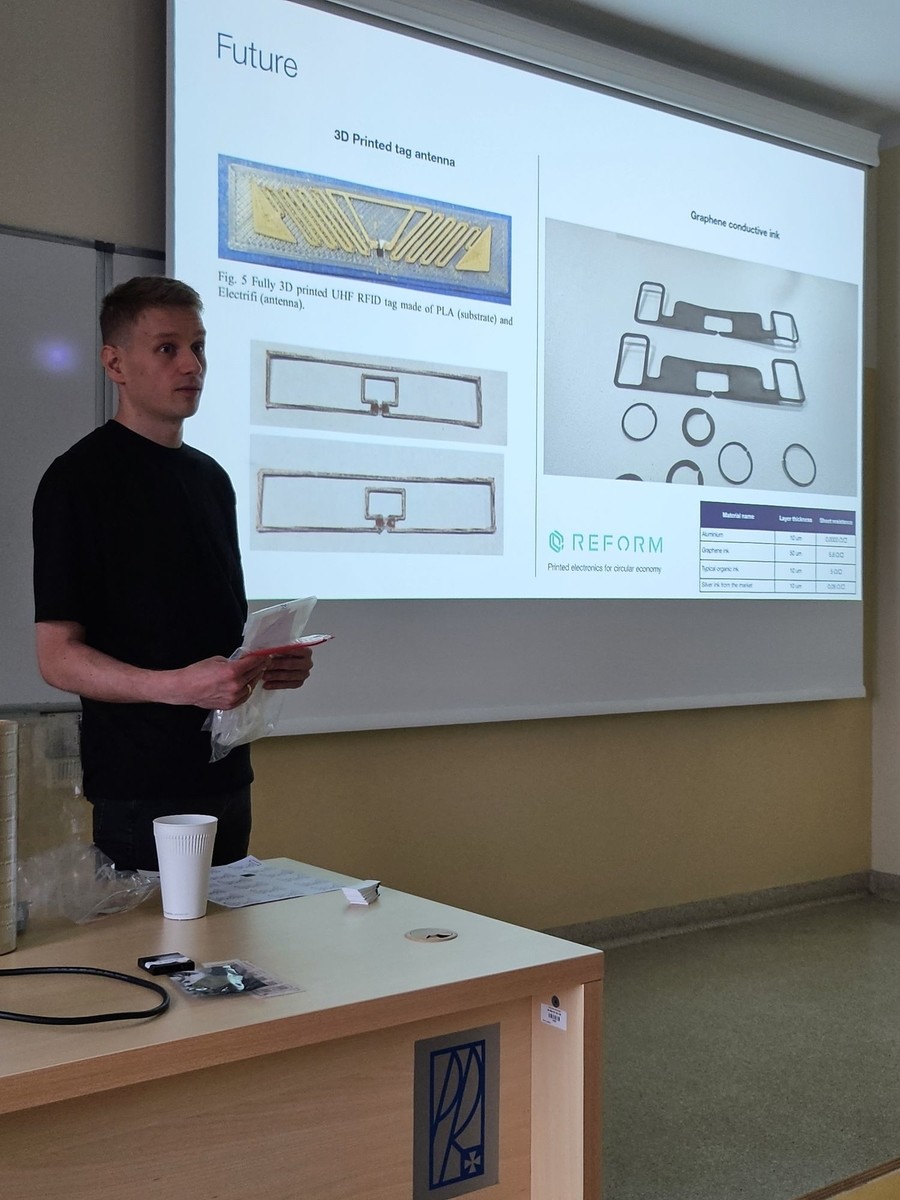 W dniu 3 czerwca 2025 roku studenci ostatniego semestru studiów II stopnia na kierunku elektronika i telekomunikacja, w ramach kończących się zajęć z modułu pn. technika radiowej identyfikacji obiektów, mieli okazję do spotkania się z przedstawicielami Talkin Things SA, które zostało zorganizowane z inicjatywy dra hab. inż. Piotra Jankowskiego-Mihułowicza, prof. PRz w ramach Politechnicznej Sieci VIA CARPATIA. W trakcie spotkania odbył się wykład, podczas którego mgr inż. Wojciech Lichoń (R&D Director) oraz mgr inż. Mateusz Chamera (Lead of RFID Tag Development) wpierw zaprezentowali studentom Wydziału Elektrotechniki i Informatyki swoje sylwetki zawodowe, a następnie przedstawili projektowo-produkcyjny profil działalności firmy w zakresie techniki RFID. Podczas prezentacji omawiane były konkretne przykłady projektowania, prototypowania i produkcji w Talkin Things identyfikatorów RFID, które znajdują powszechne zastosowania w zautomatyzowanych procesach takich firm, jak np.: Decathlon, Inditex, Boehringer Ingelheim, Sato, Nestle, Calzedonia, L'Oréal, Sanofi, Mango, Goodwill, Mars, Coca-Cola, GSK, P&G, TAKARA-TOMY Company. Prezentacja była wzbogacona pokazami półfabrykatów projektowanych anten, wafli krzemowych z chipami wykorzystywanymi w procesie produkcji, a także finalnych rozwiązań konstrukcyjnych identyfikatorów RFID. Było to doskonałe uzupełnienie wiedzy, jaką studenci zdobywali podczas zajęć dydaktycznych realizowanych w przedmiotowym zakresie.