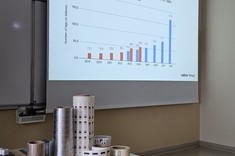 Na podkreślenie zasługuje fakt, że obecni przedstawiciele firmy Talkin Things są absolwentami WEiI PRz, a swoje pierwsze doświadczenia zawodowe zdobywali w zaawansowanych projektach B+R+W realizowanych dla partnerów przemysłowych w ZSEiT. Można więc powiedzieć, że kluczowy potencjał badawczo-rozwojowy firmy Talkin Things został zbudowany na zasobach ludzkich wykształconych przede wszystkim w zespole techniki RFID w ZSEiT PRz. Zaplecze to wpierw było rozwijane w pomieszczeniach budynku A na WEiI, a aktualnie funkcjonuje w Głogowie Małopolskim (Talkin Things R&D Hub). W chwili obecnej spółka posiada w Warszawie linie produkcyjne, na których wytwarza znaczniki RFID autorsko opracowane w Talkin Things R&D Hub. Znaczące jest więc to, że na podstawie potencjału intelektualnego, który został wytworzony w zakresie techniki RFID w ZSEiT PRz, można budować tak innowacyjne przedsięwzięcia w gospodarce na Podkarpaciu, co w miły sposób zostało zasygnalizowane gromkimi brawami, jakimi studenci WEiI podziękowali przybyłym przedstawicielom firmy Talkin Things.