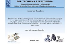 - Mariusz Skoczylas, Stanowisko do badania wpływu uwarunkowań telekomunikacyjnych na efektywność procesu nawigacji obiektu dynamicznego przy uwzględnieniu zróżnicowanej struktury geometryczno-materiałowej otoczenia