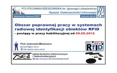 - 2012-12-19 – Mariusz Węglarski, Zintegrowana technologia hybrydowa w systemie radiowej identyfikacji obiektów RFID – podstawowe i szczegółowe założenia projektu oraz zakładany przebieg jego realizacji