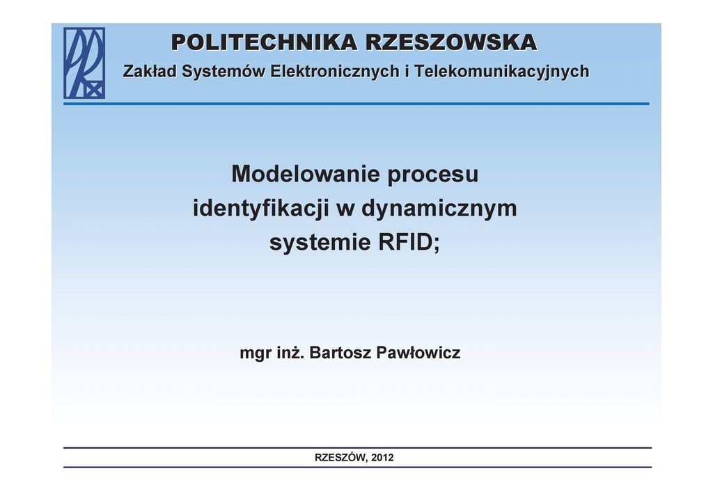 - Bartosz Pawłowicz, Modelowanie procesu identyfikacji w dynamicznym systemie RFID