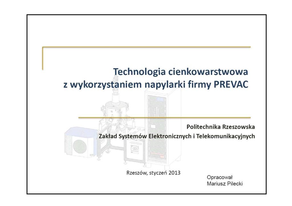 - 2013-01-22 – Pilecki Mariusz, Technologia cienkowarstwowa z wykorzystaniem napylarki firmy PREVAC