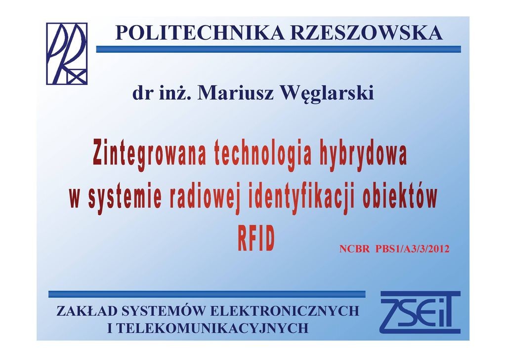 - 2013-07-04 – Wałach Tadeusz, Opracowanie bazy materiałowej dla realizacji laboratoryjnego modelu identyfikatora RFID w technologiach PCB i LTCC