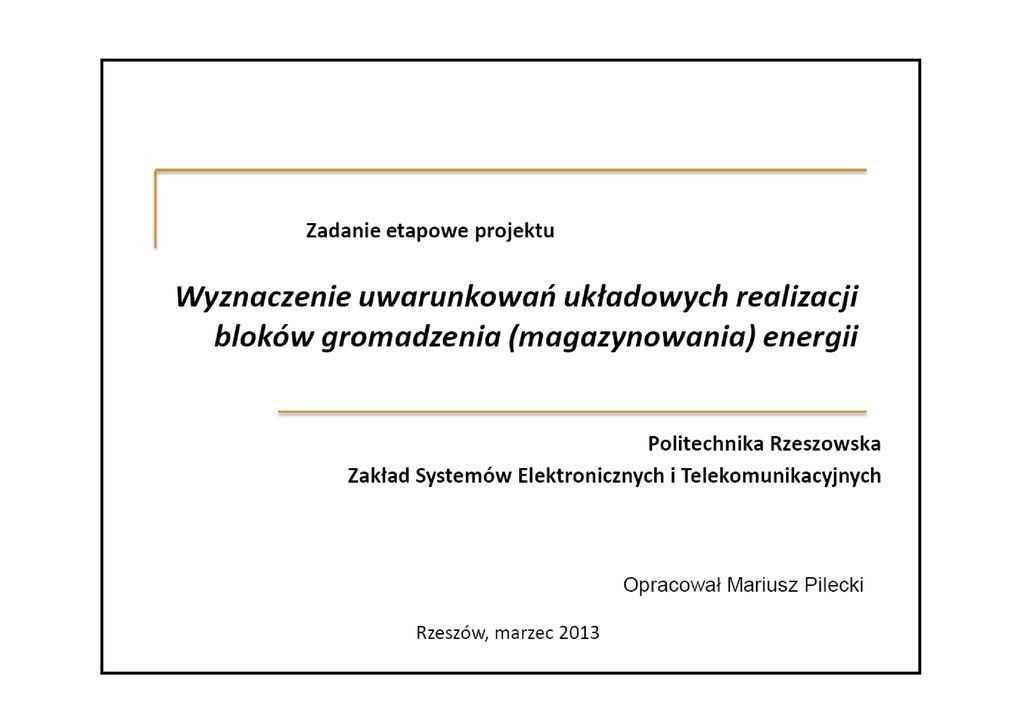 - 2013-03-21 – Pilecki Mariusz, Wyznaczenie uwarunkowań układowych realizacji bloków gromadzenia (magazynowania) energii
